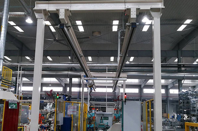 AREKE的解決方案:AREKE組合式懸掛起重機(鋁制主梁), 智能型提升裝置。